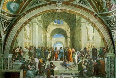 この絵には実に多くのギリシャの哲学者、数学者などが描かれています。