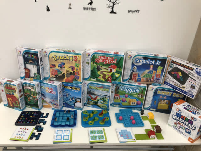 小学生たちが知育玩具を相手に集中モードで戦っていました